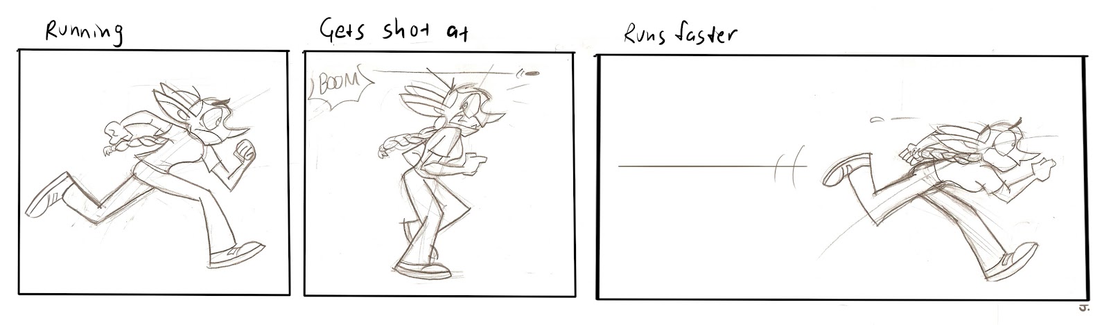 When setting up keyframes, keep in mind how fast the character will make it to each point. When animating the in-betweens, include more to slow the animation down and more to speed it up. If a character moves from one keyframe with fewer frames, they appear to be moving more quickly.